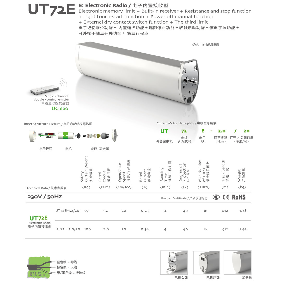 電子記憶限位功能+內(nèi)置遙控功能+遇阻停止功能+輕觸啟動功能+停電手拉功能+第三行程點功能+可外接干觸點開關(guān)功能