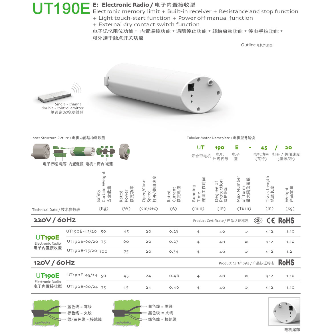 電子記憶限位功能+內(nèi)置遙控功能+遇阻停止功能+輕觸啟動功能+停電手拉功能+第三行程點功能+可外接干觸點開關(guān)功能