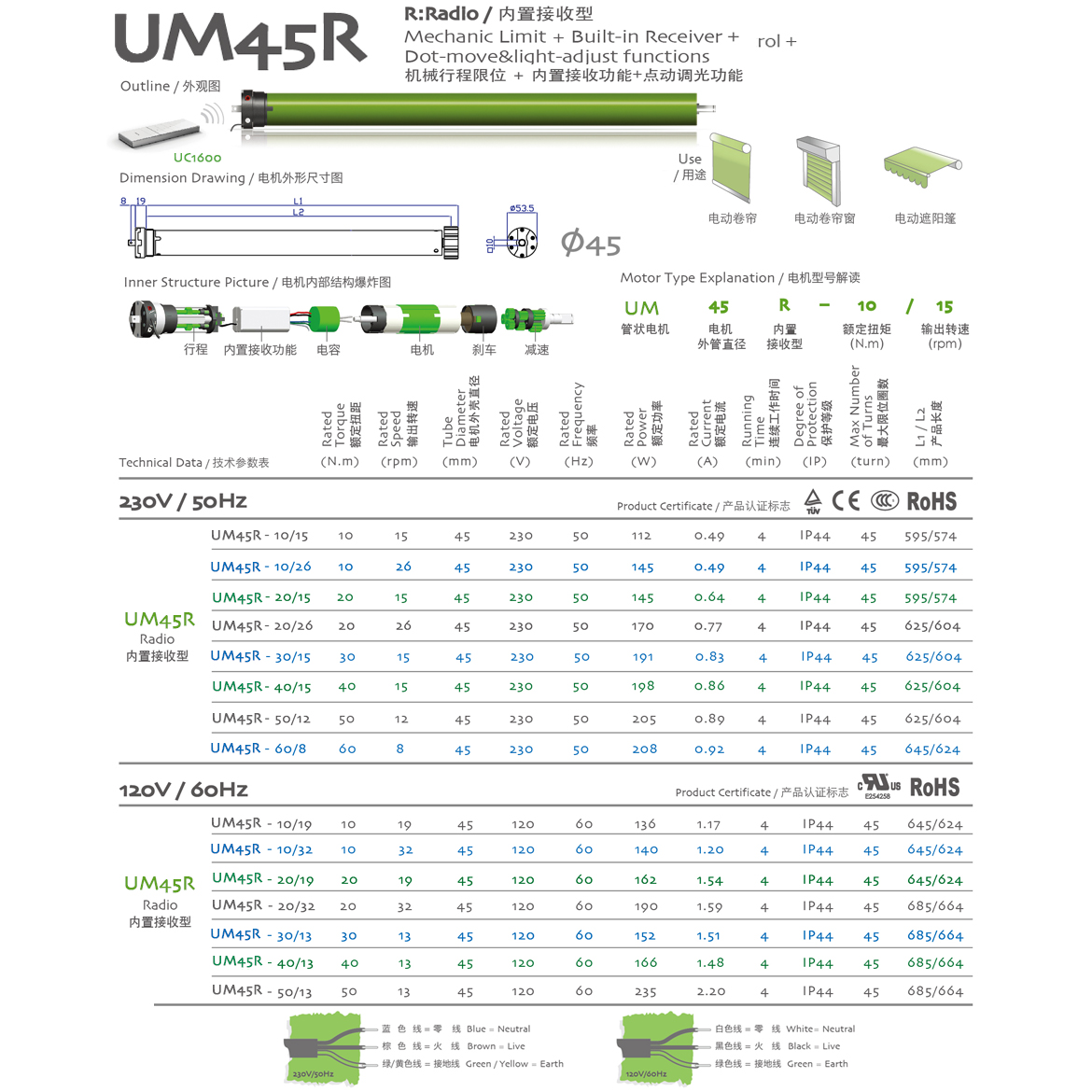 R:Radio/內(nèi)置接收型 Mechanic Limit+Integrated radio control+jogging & tilt/機(jī)械行程限位+內(nèi)置接收器+點(diǎn)動調(diào)光功能